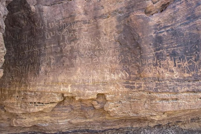 Kaya sığınağında bulunan yazıtlardan bazıları, Petra şehrini inşa eden halkın dili olan Nabati dilinde yazılmıştı. Yazıtların çözümlenmesi devam ediyor. C: Egyptian Ministry of Tourism and Antiquities
