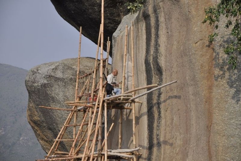 Swat Vadisi’nde bulunan ve MS 7. veya 8. yüzyıla tarihlenen Buddha kaya kabartması restorasyon sürecinde. C: ISMEO / Venedik Ca’ Foscari Üniversitesi