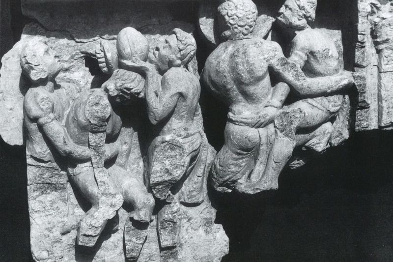 Buddha’nın güreşirken yapılmış bu tasviri, Yunan mitolojisindeki Herakles ile dev Antaeus’un dövüşünü betimleyen heykellerle çarpıcı görsel benzerlikler taşıyor. C: Pakistan İtalyan Arkeoloji Heyeti Arşivi
