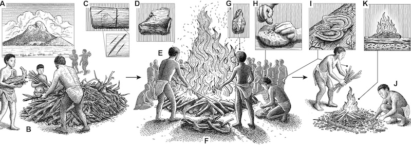 Afrika’da 9.500 yıllık ölü yakma ritüelinin rekonstrüksiyonu. C: Jessica I. Cerezo-Román et al. 2026.