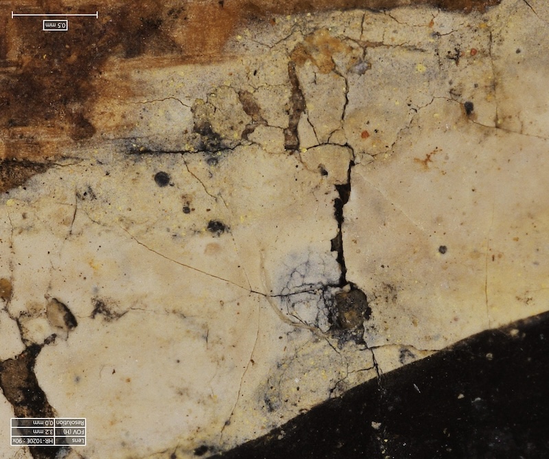 Kızılötesi fotoğraflar beyaz çizgilerin çakalın figürünün üzerine biçimini değiştirmek amacıyla boyandığını göstermenin yanı sıra araştırmacılar, beyaz boyanın bileşimini belirlemek için üç boyutlu dijital mikroskop kullandı. Antik düzeltme sıvısının her ikisi de beyaz karbonat olan kalsit ve huntit karışımından oluştuğunu buldular. Bu bileşim, Ramose’un dalgalanan cüppelerini betimlemek için kullanılan ve yalnızca huntit içeren boyadan farklıydı.