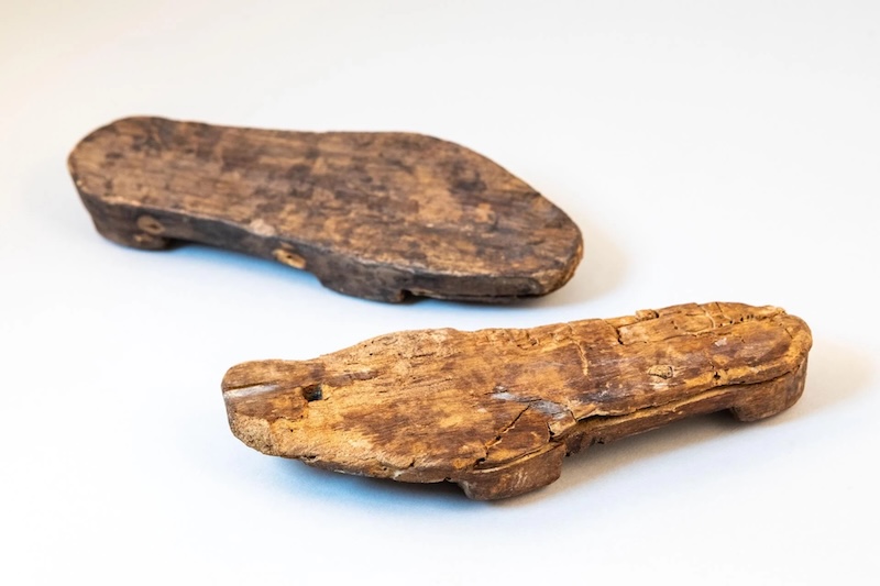 Alandaki iki adet eksiksiz akçaağaç sandalet tabanı bulunması sayesinde, en gençlerin günlük yaşamları da yansıtılıyor. Sculponae olarak bilinen — tabanına deri kayışlar bağlanan ahşap tabanlı sandalet — bir ayakkabı türüne ait bu tabanlar, ayağı yerden yukarıda tutmak için yükseltilmiş platformlar taşıyor.