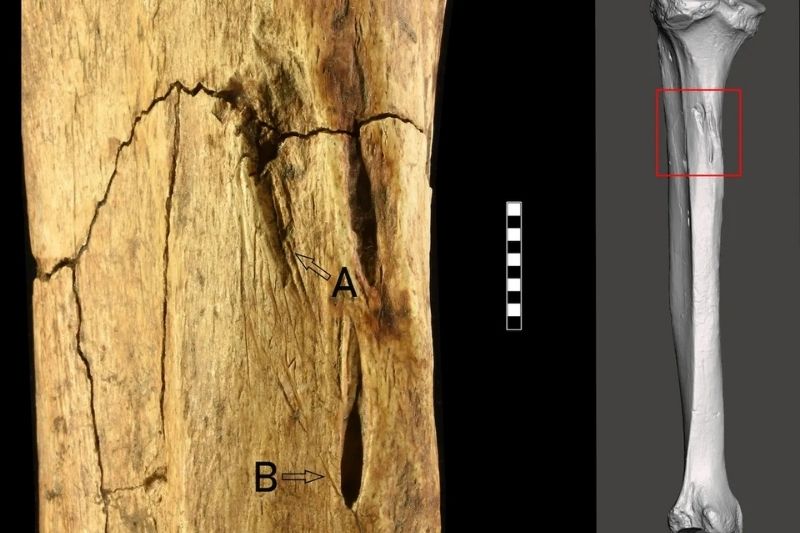 Araştırmacı o anı, “Zihnimde taşlar yerine oturmaya başladı” sözleriyle anlatıyor. Daha sonra Verona Doğa Tarihi Müzesi’nde yapılan detaylı fiziksel incelemelerde, tibia (kaval kemiği) üzerinde de benzer iki iz daha saptandı.