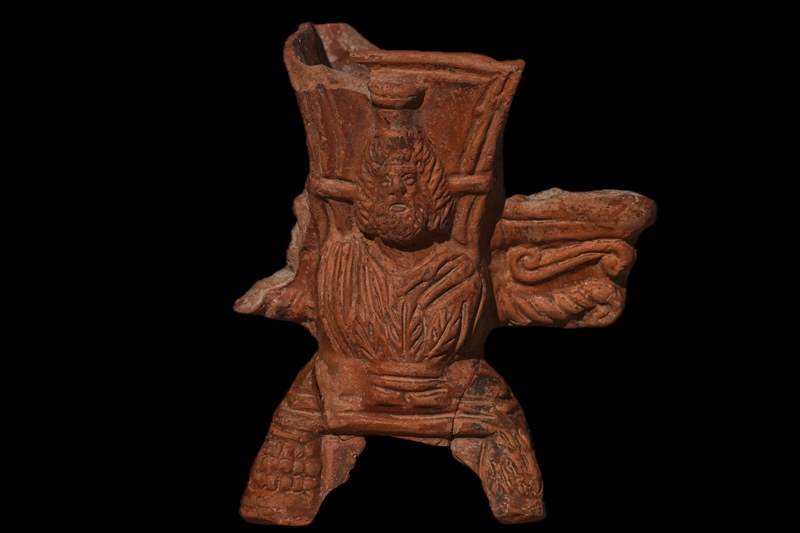 Efes’te yürütülen kazı çalışmalarında, üzerinde Mısır kökenli tanrı Serapis’in kabartması bulunan pişmiş toprak bir tütsü kabı bulundu.