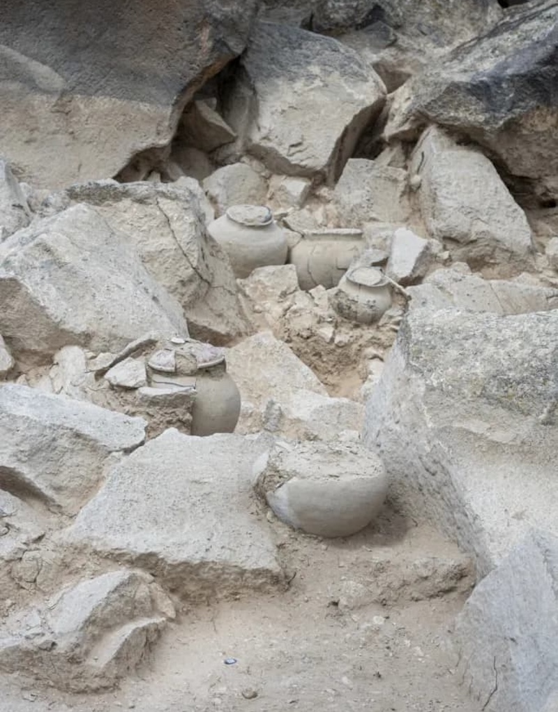 Bu konut birimlerinden birinde, ekip bir depo/ambar odasının kalıntılarını teşhis etmeyi başardı. Bu mekânda, erzak depolamak için tasarlanmış ve bizzat zemine gömülü birkaç büyük kap, 2.500 yıldan uzun süre önceki özgün konumlarında in situ halde bulundu. Ancak en olağanüstü keşif bitişik bir odadan geldi. “Bir taş kutunun yanına yaslanmış halde—bizi şaşkına çeviren—insan yüzü özellikleriyle işlenmiş bir taş bulduk. Bu, özgün konumunda korunmuş idol benzeri bir heykelcikti” diyor Dr. Iskra.