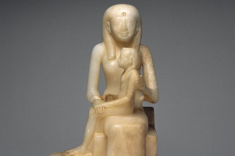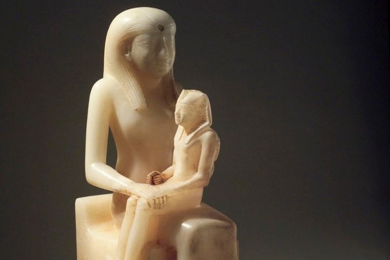 Sadece 40 santimetre yüksekliğindeki bu heykel, boyut olarak mütevazı olsa da duruşuyla büyüleyici: Eski Krallık (MÖ 2.700 ila 2.200) dönemi kraliçesi II. Ankhnespepi tahtta oturuyor, oğlu Firavun II. Pepi ise onun dizlerinin üzerine tünemiş durumda. II. Pepi, daha sonra Kral Tutankamon’da da görülen, krallığın tartışılmaz bir simgesi olan aynı belirgin kraliyet başlığını takıyor.