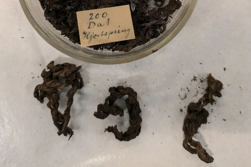 Hjortspring teknesinden günümüze ulaşan halat ve ip aksamı parçaları. (Görsel: Mikael Fauvelle; CC BY 4.0)