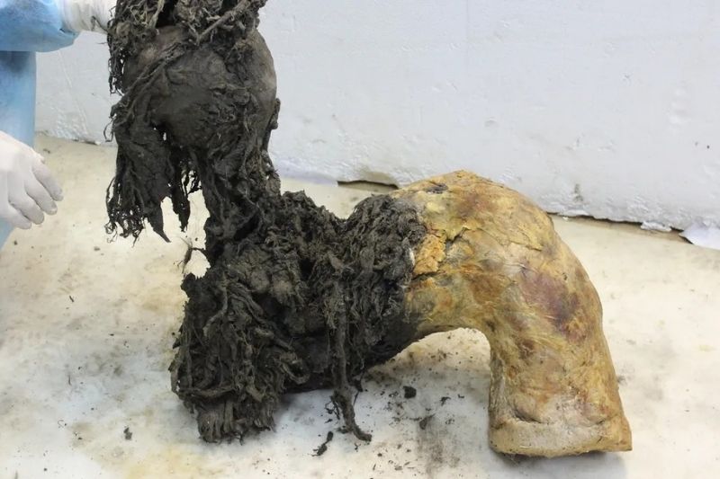 Araştırmacılar, yukarıda gösterilen, olağanüstü iyi korunmuş bir mamut bacağından RNA dizilediler. (Görsel: Valeri Plotnikov)