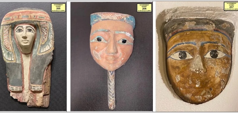 Eldarir, 2018 yılında bir kadına ait lahit kapağını, sakallı bir maskeyi ve daha büyük bir maskeyi kaçırdı. C: U.S. Attorney’s Office, Eastern District of New York