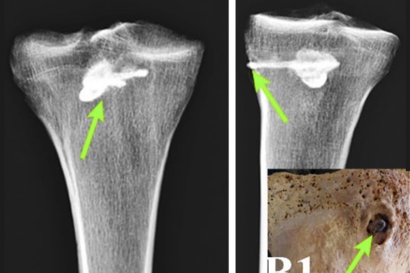 Daha da önemlisi, ok ucunun etrafındaki kemik yapısı, bireyin bu yaralanmadan sonra yaşamaya devam ettiğini gösteren iyileşme işaretleri sergiliyordu. Ok ucunun saplandığı bölgenin etrafındaki kemik dokusu, zamanla yoğunlaşarak kompakt kemiğe dönüşmüştü. Tibia’nın ok ucunun girdiği yer olan tibial tüberozite bölgesinde 11.6 mm çapında yuvarlak, kompakt yeni kemik oluşumu gözlemlendi. Ayrıca, ok ucu çevresinde enfeksiyon belirtisi (yeni kemik büyümesi veya deformite) olmaması, o dönemin tıbbi ve ilaç uygulamaları hakkında kapsamlı bir anlayışa sahip olunabileceğini düşündürüyor.