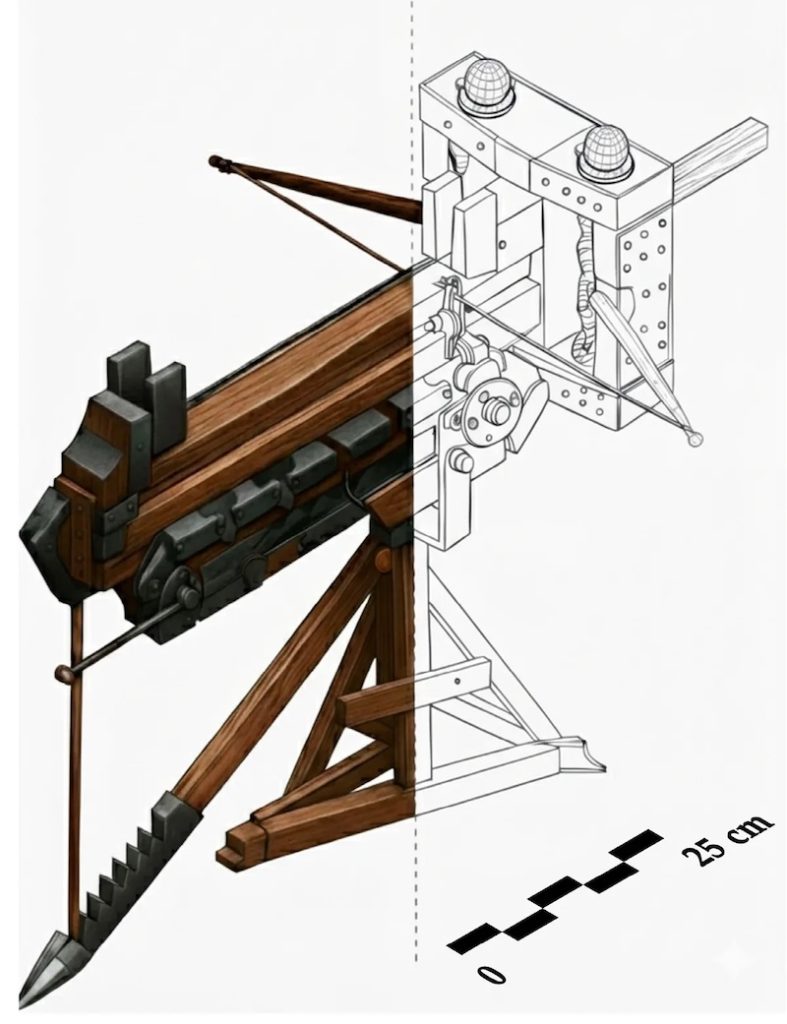 Araştırmacılar Philon’un diyagramlarını analiz ederek, onun tanımladığı polybolos’un muhtemelen Pompeii’de görülen hasarı yaratma kapasitesinde olmadığı sonucuna varıyor. Tabii eğer Rodos cephaneliğinin efsanevi mühendisleri, Pompeii kuşatmasına giden yüzyıllarda birkaç iyileştirme yapmadıysa. Çalışmanın yazarları özellikle “bir bisikletin düşük viteslerine benzer bir dişli azaltma sistemi ya da mekanik redüktörün” mermi deliklerini oluşturmak için gereken burulma enerjisini sağlayabileceğini belirtiyor.