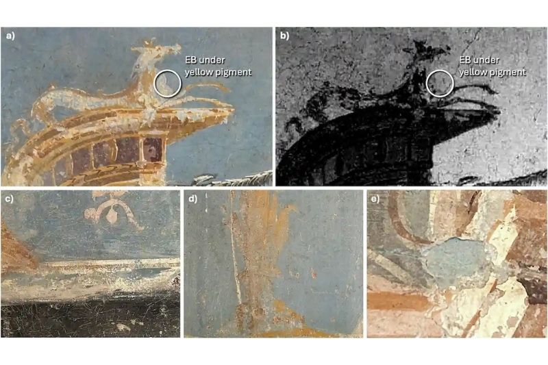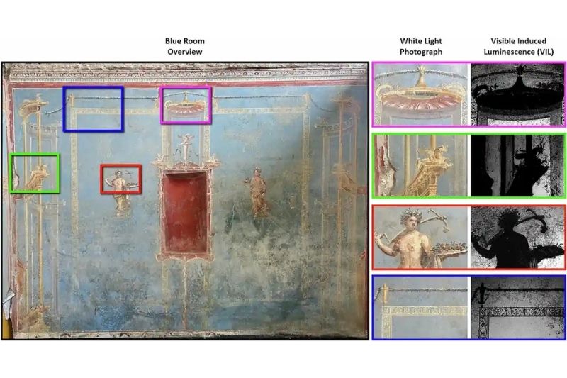 Bu yöntem Mavi Oda’daki yoğun pigment varlığını doğrulamakla kalmadı; Leda Evi’ndeki bir kadın portresinin gözlerinde ve Siyah Oda’daki bir fresk kompozisyonunun giysilerinde olduğu gibi Pompeii’nin başka noktalarında da pigmentin varlığını tespit etti.