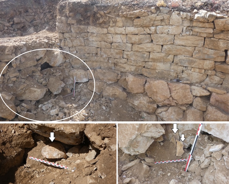 İnsan kafatası kırılmış ve kalenin köşesine dağılmıştı, fakat savunma duvarlarının çöküşüyle ilişkili moloz tabakasına ait olduğu açıktı.