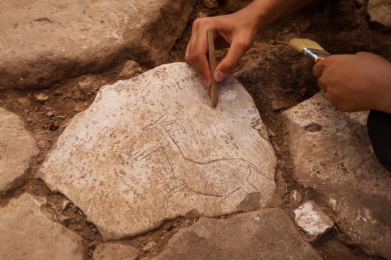 Şanlıurfa’daki Sefertepe kazılarında ortaya çıkarılan bir alt öğütme taşının arka yüzünde yavru yaban domuzu çizimi bulundu.