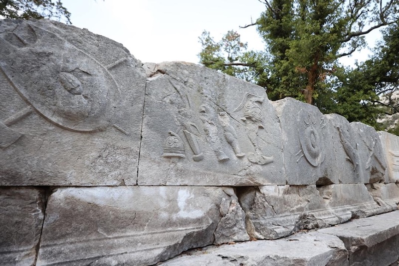 Söz konusu süslemeler, anıt mezarın yalnızca bir aile gömütü değil, aynı zamanda Termessos kimliğinin, savaşçı geleneğinin ve mitolojik referanslarının taşa kazınmış bir özeti olduğunu düşündürüyor.
