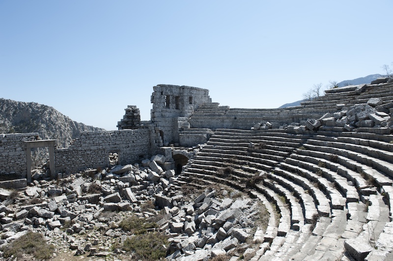 Güllük Dağı’nın eteklerine, 1050 metre yükseklikte kurulan Termessos, sarp coğrafyası ve doğal savunma sistemi sayesinde hem antik çağda hem de sonrasında yağma ve tahribattan büyük ölçüde korunmuş bir kent.